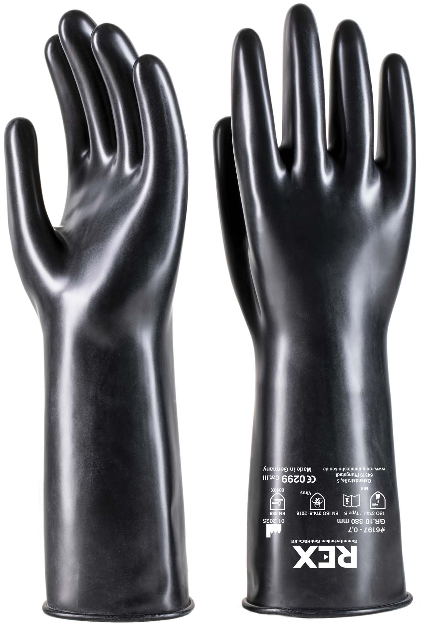 Chemikalien Schutzhandschuh aus Butyl-Kautschuk, zum Einsatz bei sehr hoher Beanspruchung durch Ester, Ketone, Gase, Abgase und spezielle Chemikalien.